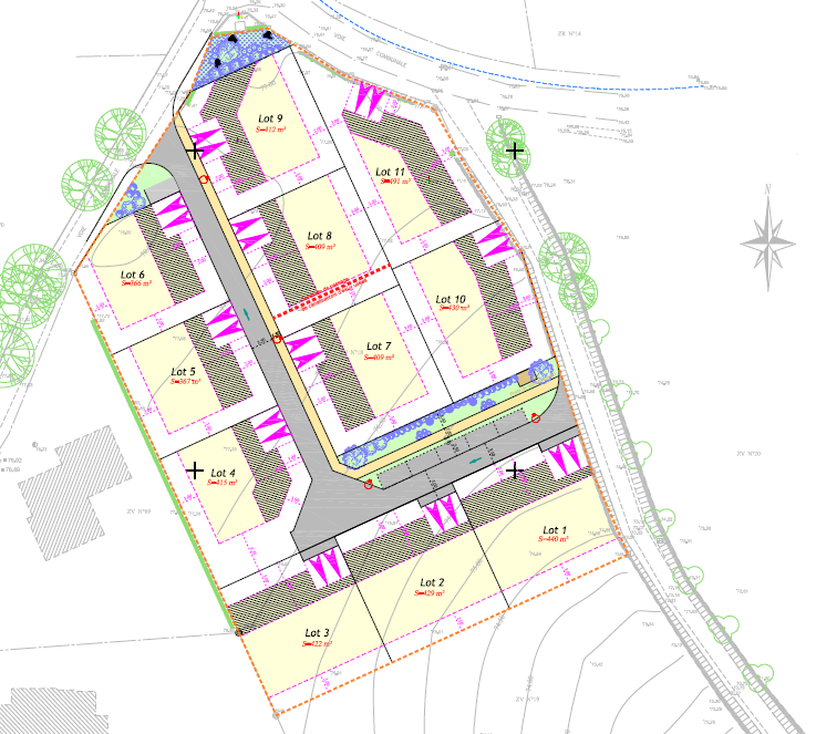 11 lots Viabilisés  et libres de constructeur À partir de 28 500 € De 366 m²  à 491 m²