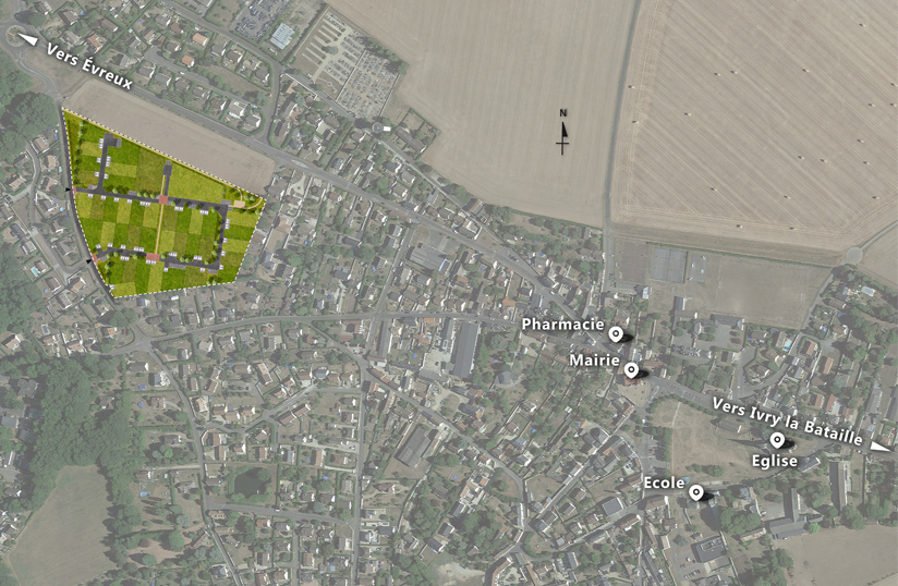 - Commerces : une épicerie, une boulangerie. Un supermarché à Garennes-sur-Eure à 4km-5min.